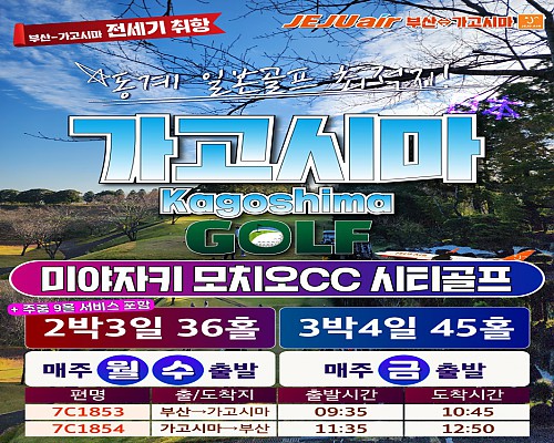 가고시마로 떠나는 겨울 골프!!주중 9홀 서비스 포함!!